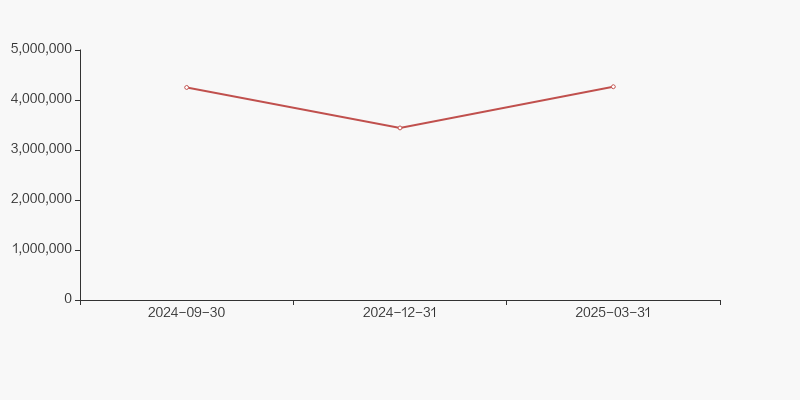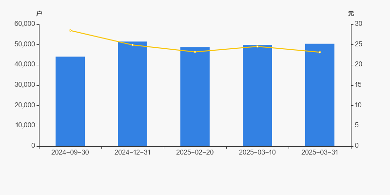截至2025年3月31日,公司最新总股本为5.5亿股,其中流通股本为5.32亿股。户均持有流通股数量由上期的1.07万股下降至1.05万股,户均流通市值24.42万元。
