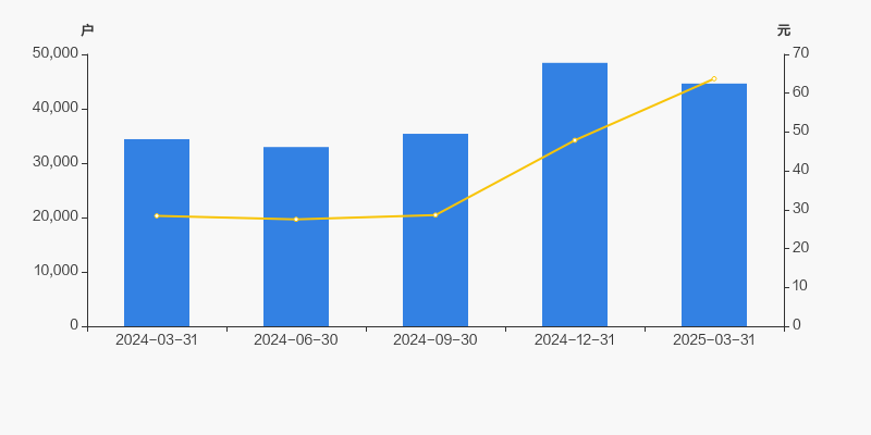 截至2025年3月31日,公司最新总股本为4.54亿股,且均为流通股。户均持有流通股数量由上期的9398股上升至1.02万股,户均流通市值64.76万元。