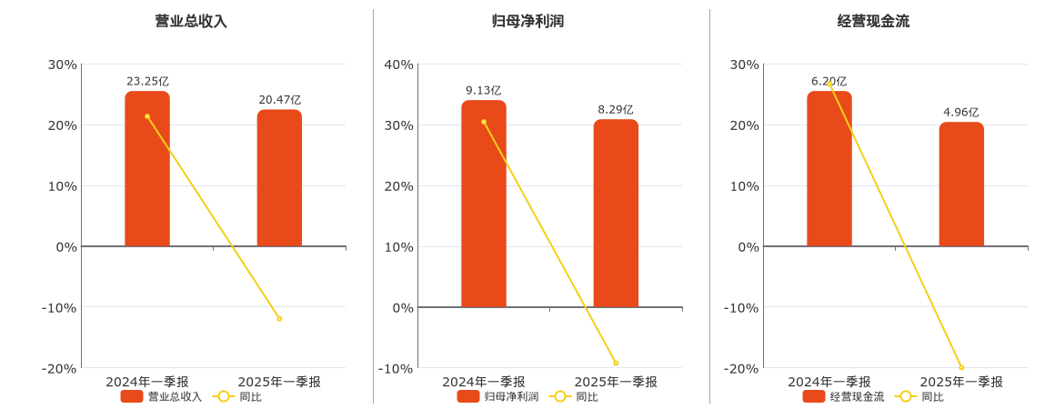 迎驾贡酒(603198.SH)2025年一季报净利润为8.29亿元、较去年同期下降9.54%
