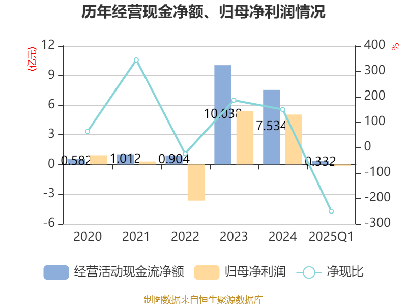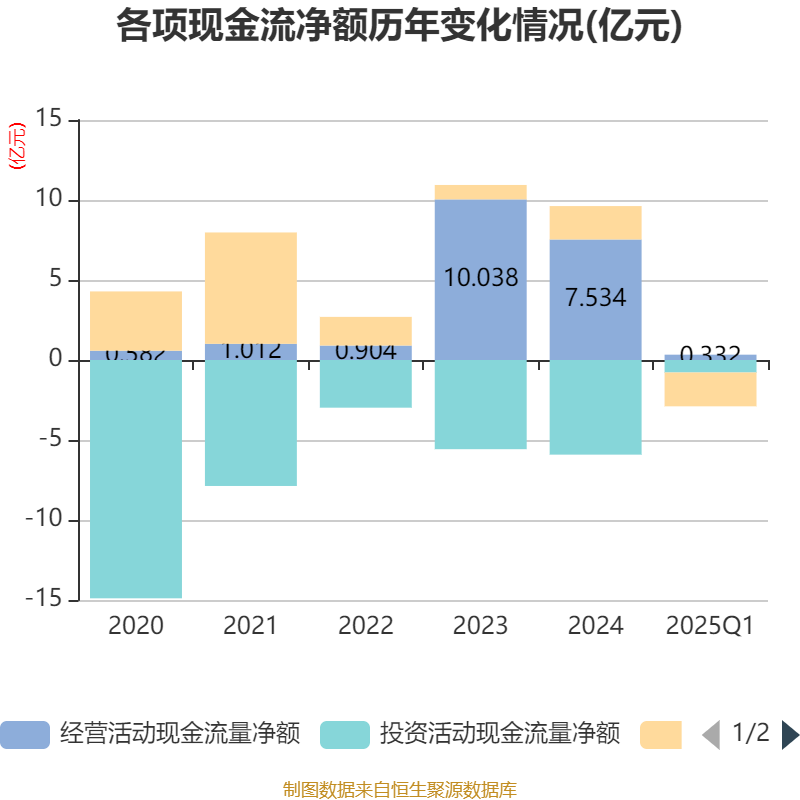 截至2025年一季度末,公司经营活动现金流净额为3316.03万元,同比下降79.48%;筹资活动现金流净额-2.11亿元,同比减少1.96亿元;投资活动现金流净额-7810.83万元,上年同期为-2.02亿元。