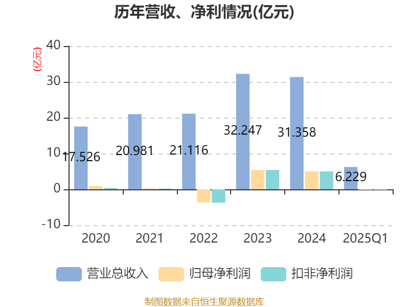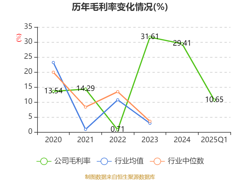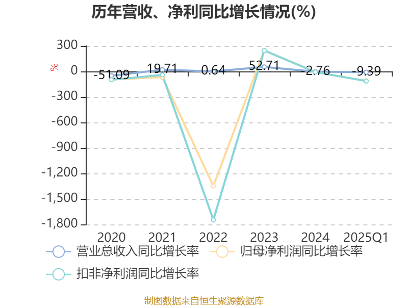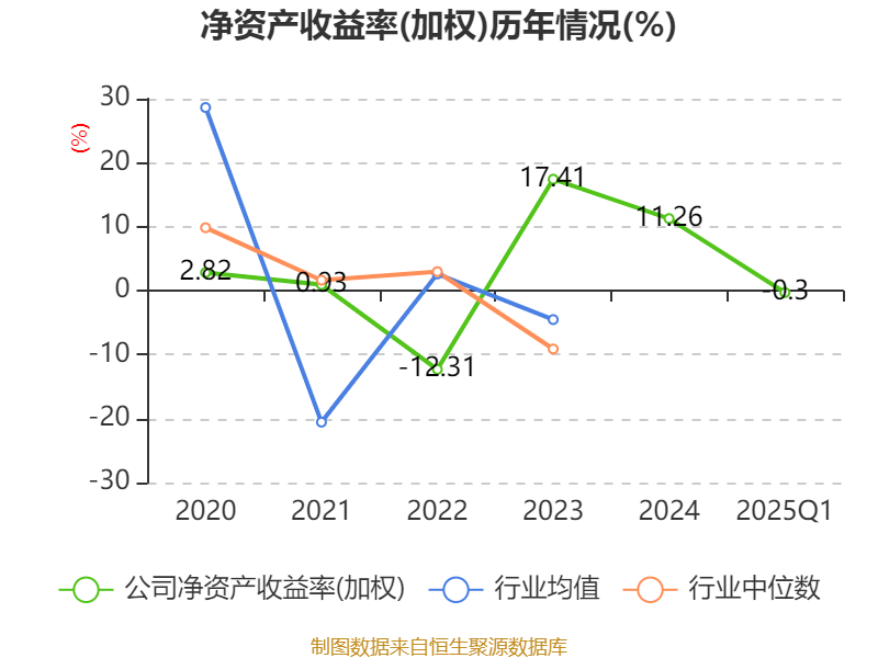 盈利能力方面, 2025年一季度公司加权平均净资产收益率为-0.3%,同比下降2.74个百分点。公司2025年第一季度投入资本回报率为-0.16%,较上年同期下降2.3个百分点。