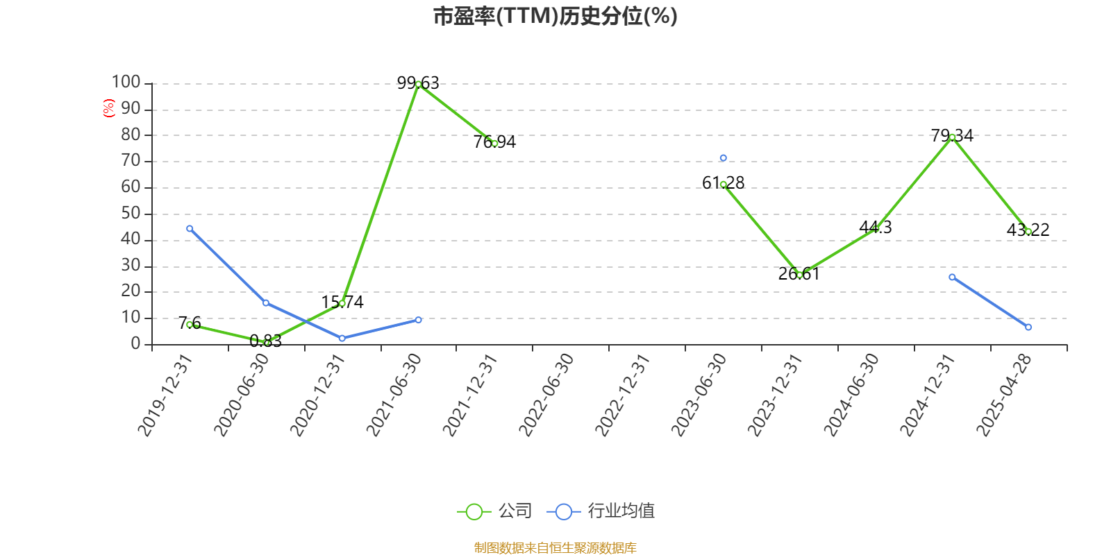 市盈率、市净率为负时,不显示当期分位数,会导致折线图中断。