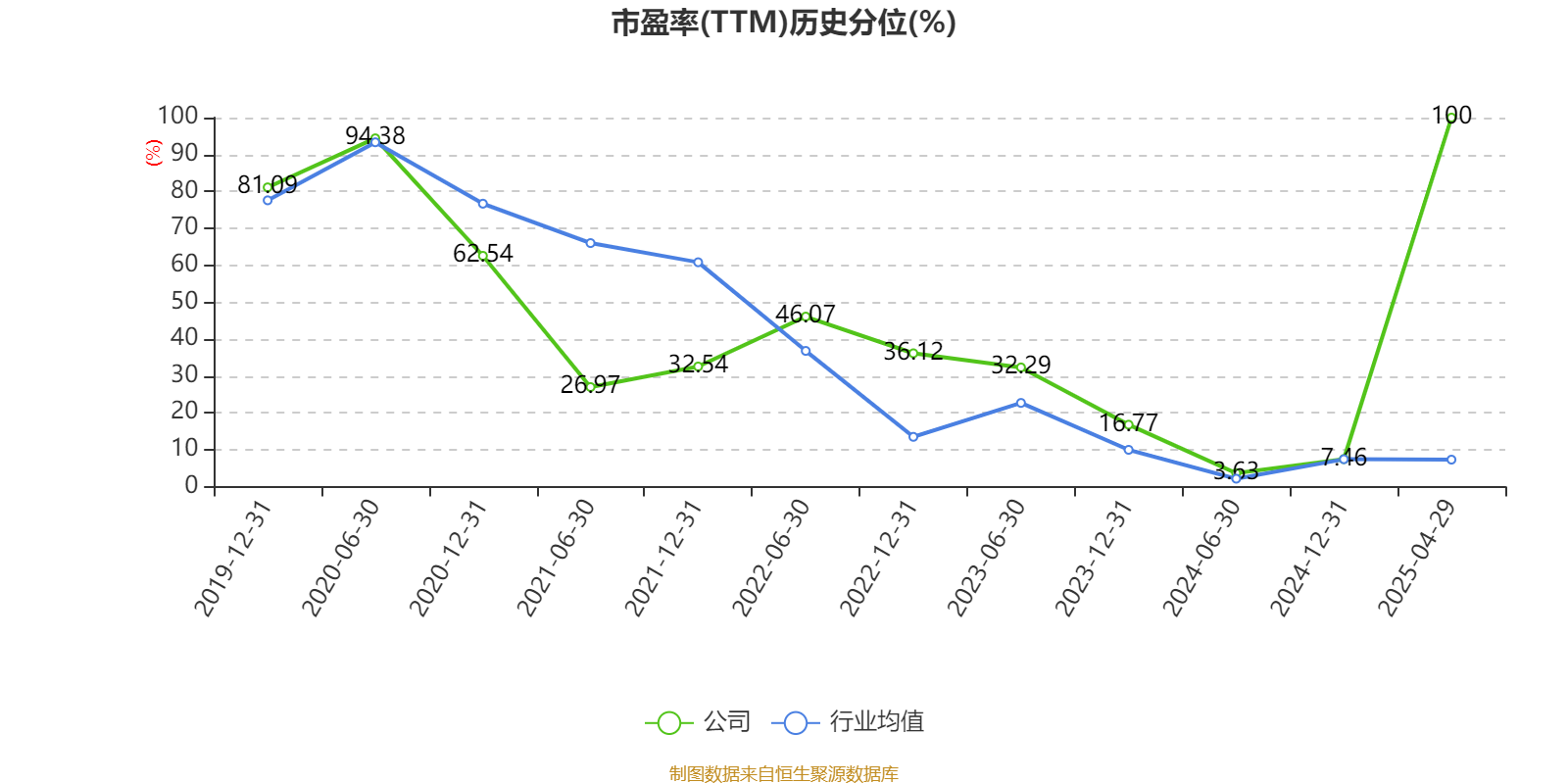 市盈率、市净率为负时,不显示当期分位数,会导致折线图中断。