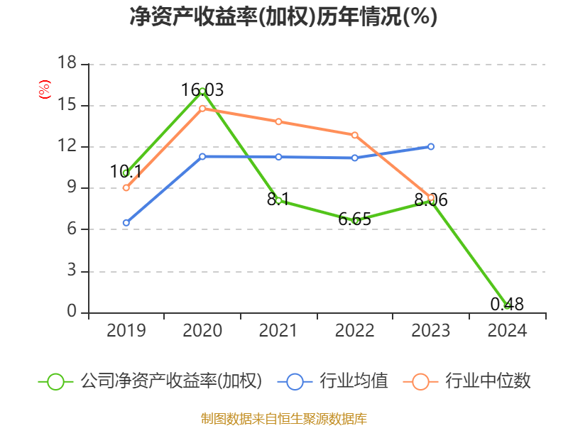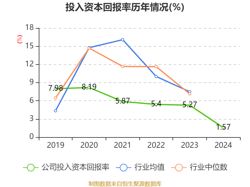 数据显示,2024年公司加权平均净资产收益率为0.48%,较上年同期下降7.58个百分点。公司2024年投入资本回报率为1.57%,较上年同期下降3.7个百分点。