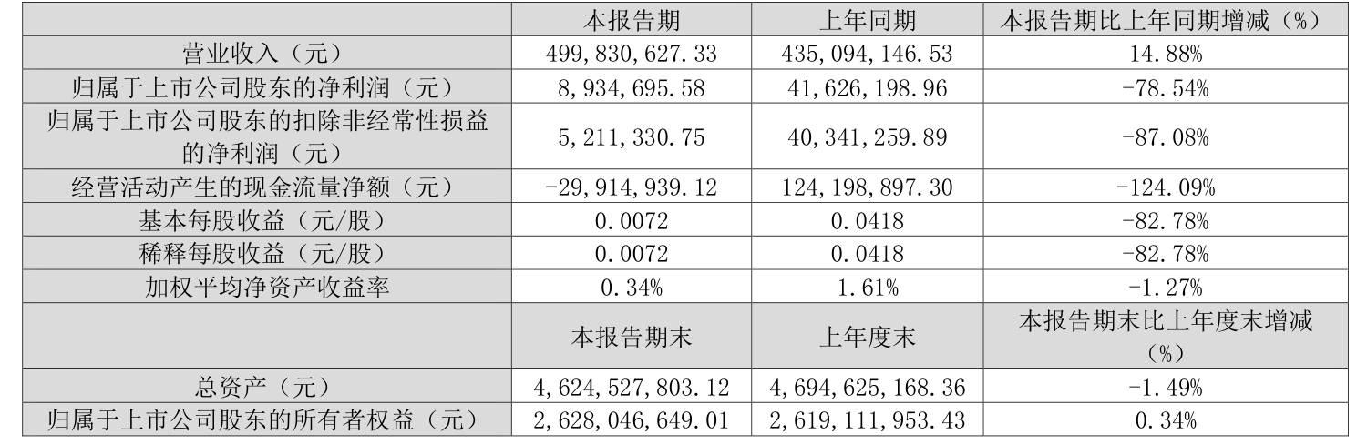 中证智能财讯双塔食品(002481)4月29日披露2025年第一季度报告。公司实现营业总收入5亿元,同比增长14.88%;归母净利润893.47万元,同比下降78.54%;扣非净利润521.13万元,同比下降87.08%;经营活动产生的现金流量净额为-2991.49万元,上年同期为1.24亿元;报告期内,双塔食品基本每股收益为0.0072元,加权平均净资产收益率为0.34%。