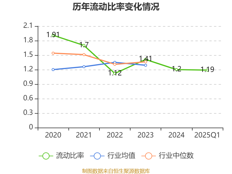 2025年第一季度,公司流动比率为1.19,速动比率为0.81。