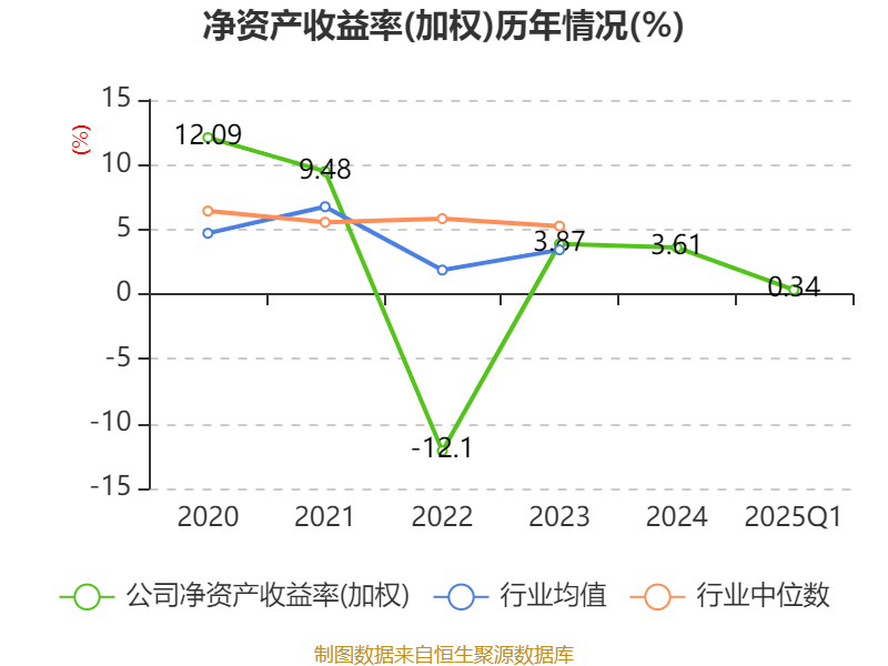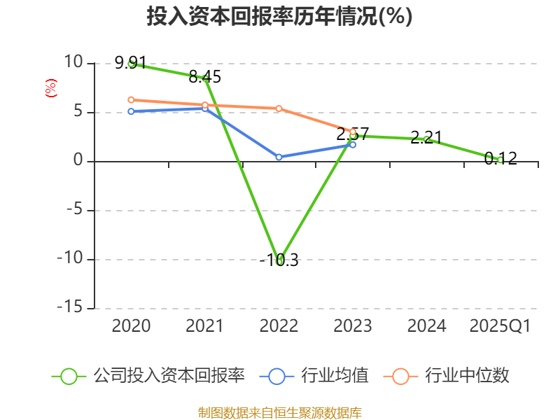 盈利能力方面, 2025年一季度公司加权平均净资产收益率为0.34%,同比下降1.27个百分点。公司2025年第一季度投入资本回报率为0.12%,较上年同期下降0.94个百分点。