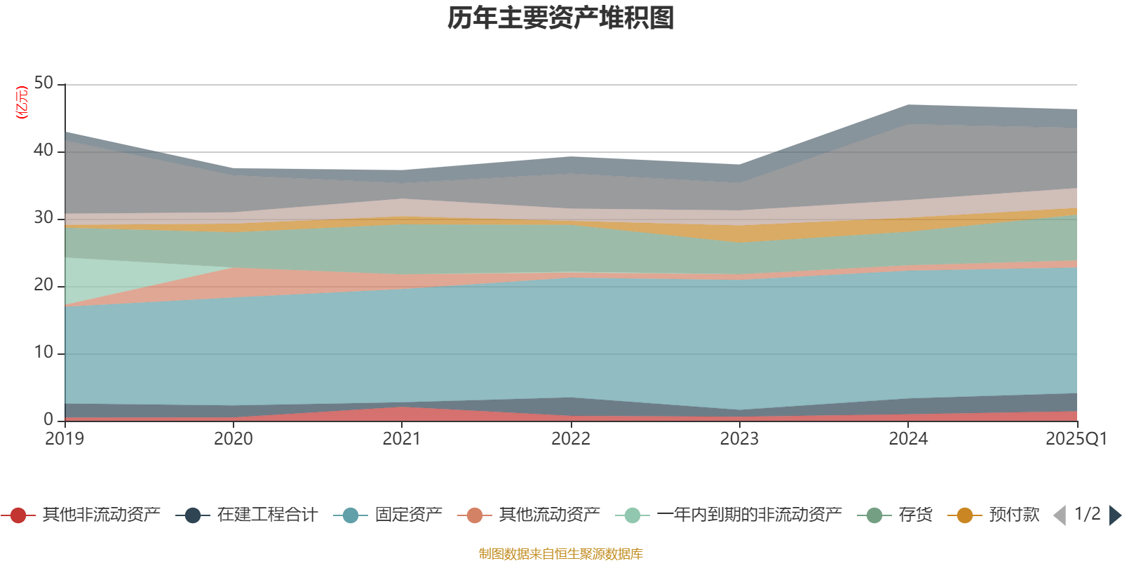 资产重大变化方面,截至2025年一季度末,公司货币资金较上年末减少20.57%,占公司总资产比重下降4.66个百分点;存货较上年末增加36.09%,占公司总资产比重上升4.04个百分点;预付款项较上年末减少51.01%,占公司总资产比重下降2.23个百分点;其他非流动资产较上年末增加43.28%,占公司总资产比重上升0.95个百分点。