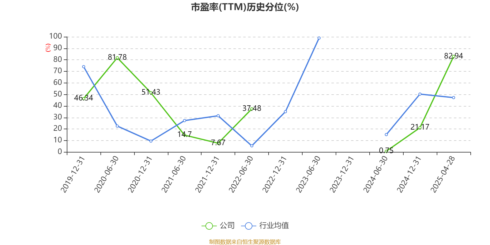 市盈率、市净率为负时,不显示当期分位数,会导致折线图中断。