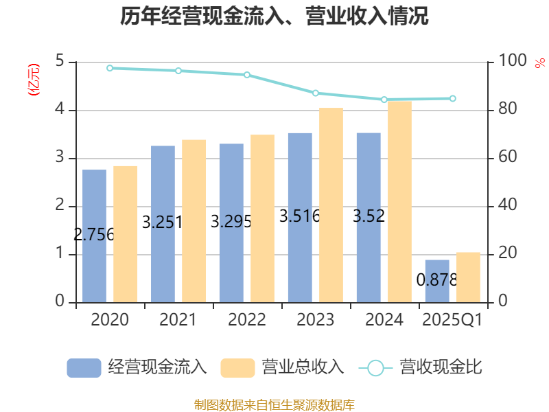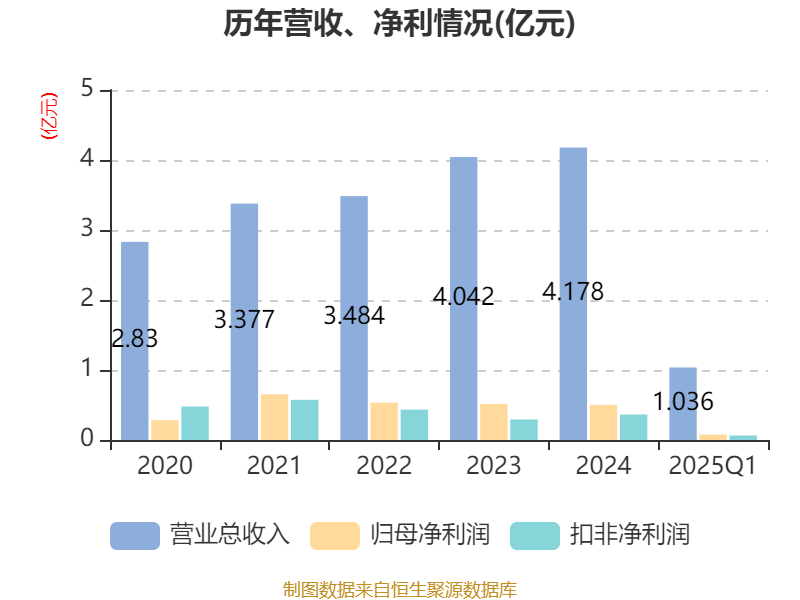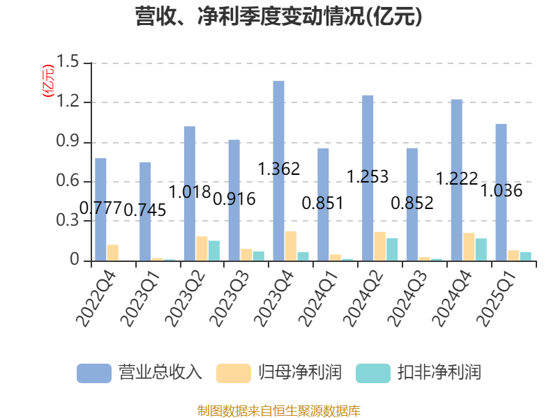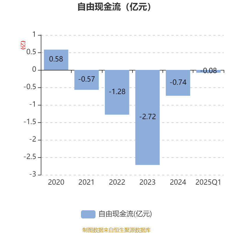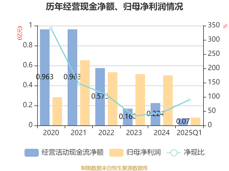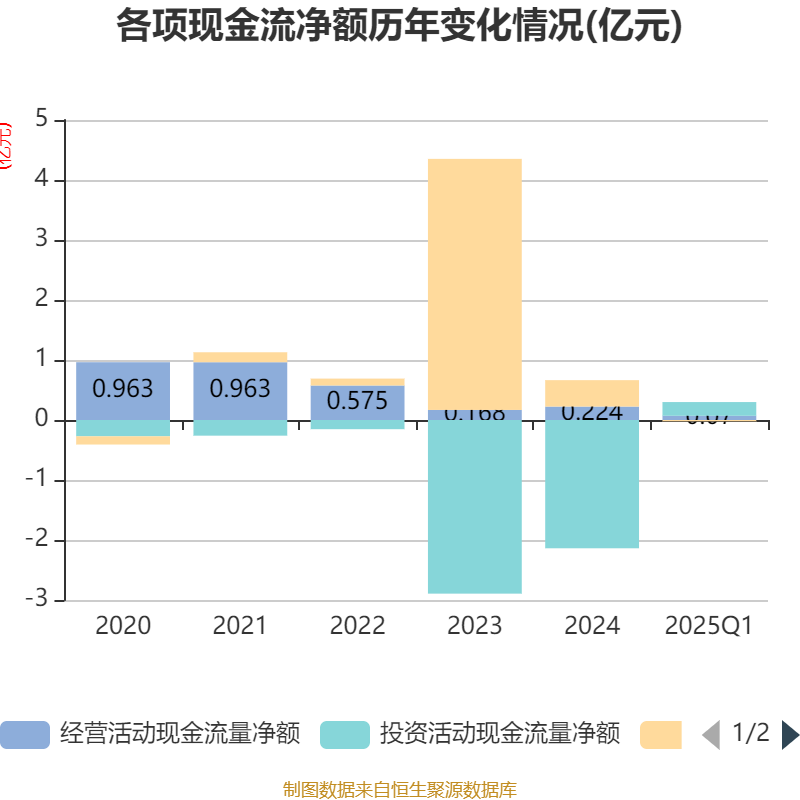 截至2025年一季度末,公司经营活动现金流净额为700.11万元,同比增加1043.03万元;筹资活动现金流净额-216.63万元,同比减少60.54万元;投资活动现金流净额2290.39万元,上年同期为-5135.38万元。