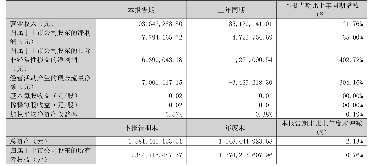 中证智能财讯固高科技(301510)4月29日披露2025年第一季度报告。公司实现营业总收入1.04亿元,同比增长21.76%;归母净利润779.42万元,同比增长65.00%;扣非净利润639万元,同比增长402.72%;经营活动产生的现金流量净额为700.11万元,上年同期为-342.92万元;报告期内,固高科技基本每股收益为0.02元,加权平均净资产收益率为0.57%。
