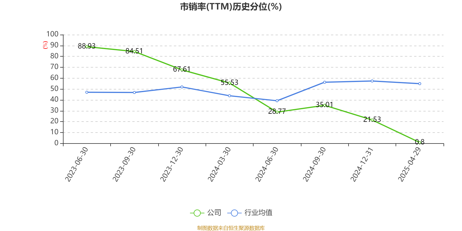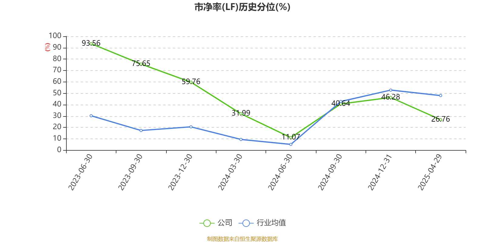 市盈率、市净率为负时,不显示当期分位数,会导致折线图中断。