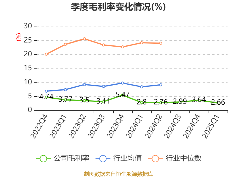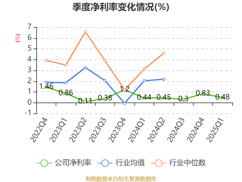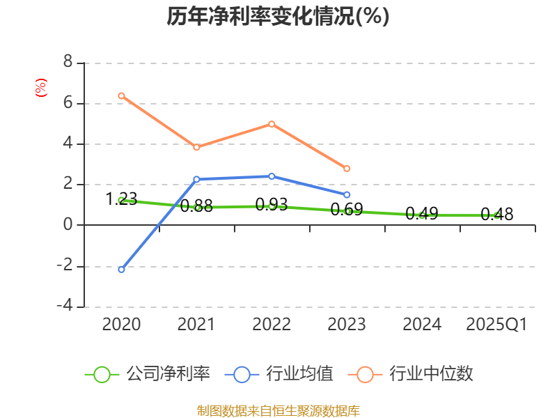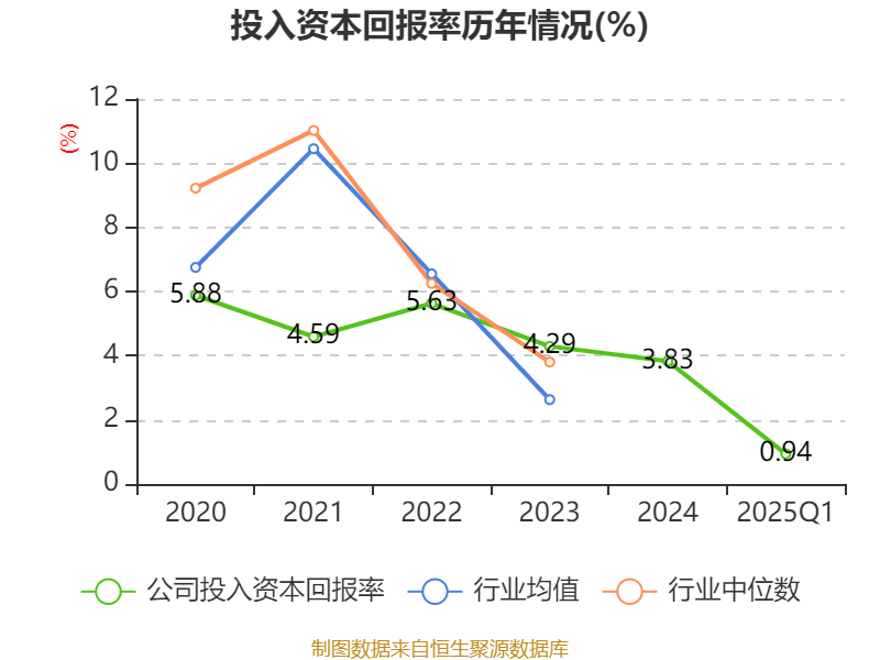 盈利能力方面, 2025年一季度公司加权平均净资产收益率为1.6%,同比上升0.59个百分点。公司2025年第一季度投入资本回报率为0.94%,较上年同期下降0.02个百分点。