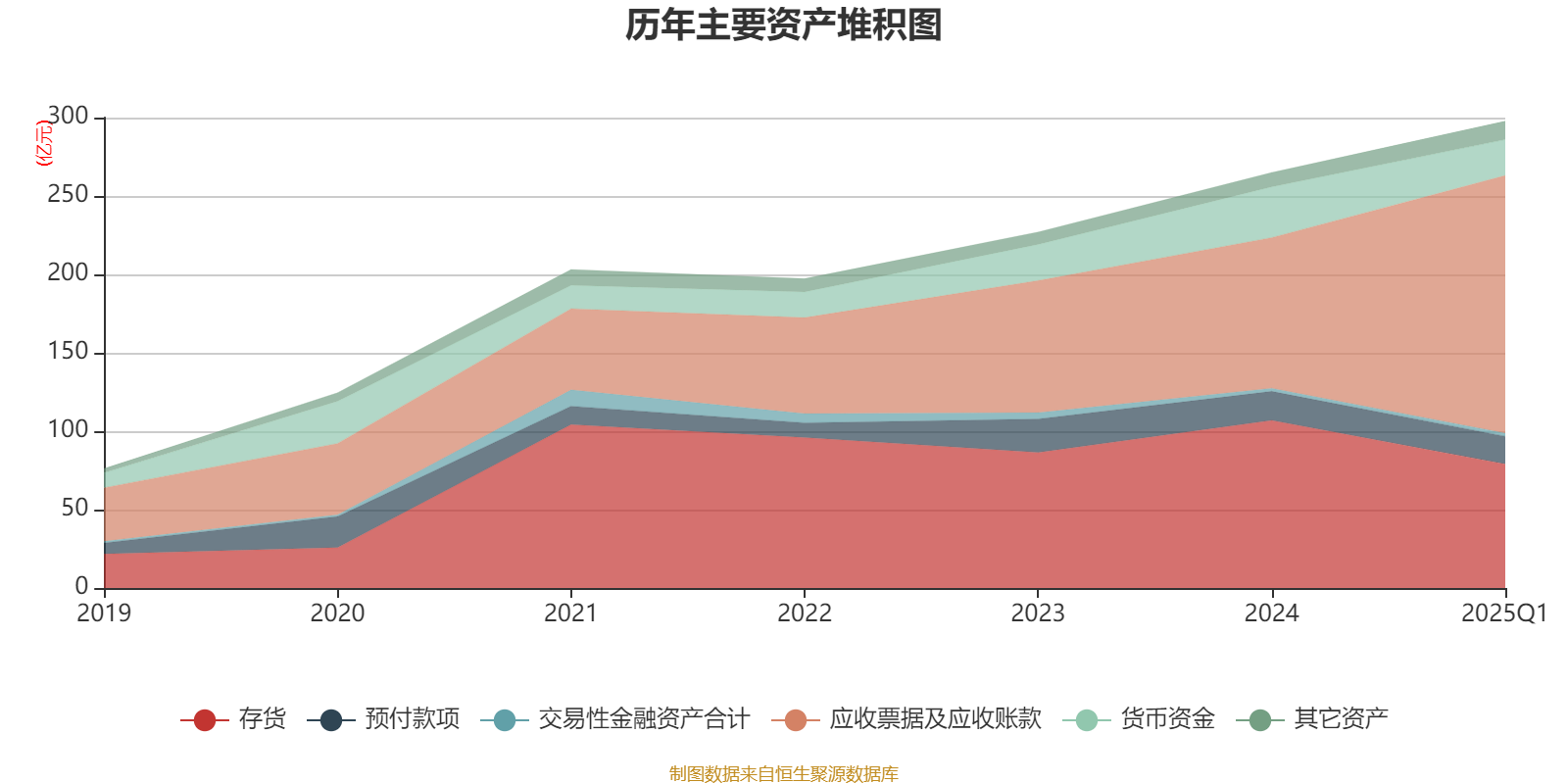 资产重大变化方面,截至2025年一季度末,公司应收票据及应收账款较上年末增加71.02%,占公司总资产比重上升18.92个百分点;存货较上年末减少26.09%,占公司总资产比重下降13.81个百分点;货币资金较上年末减少28.89%,占公司总资产比重下降4.46个百分点;应收款项融资较上年末增加551.78%,占公司总资产比重上升1.36个百分点。