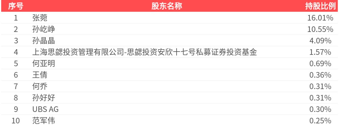 公司股东户数为6.55万户,前十大股东持股数量为1.52亿股,占总股本比例为34.43%,前十大股东持股情况如下: