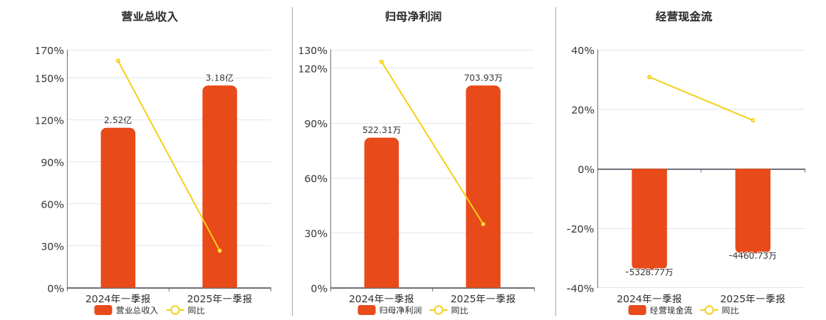 公司营业总收入为3.18亿元。归母净利润为703.93万元。经营活动现金净流入为-4460.73万元,在已披露的同业公司中排名第61。