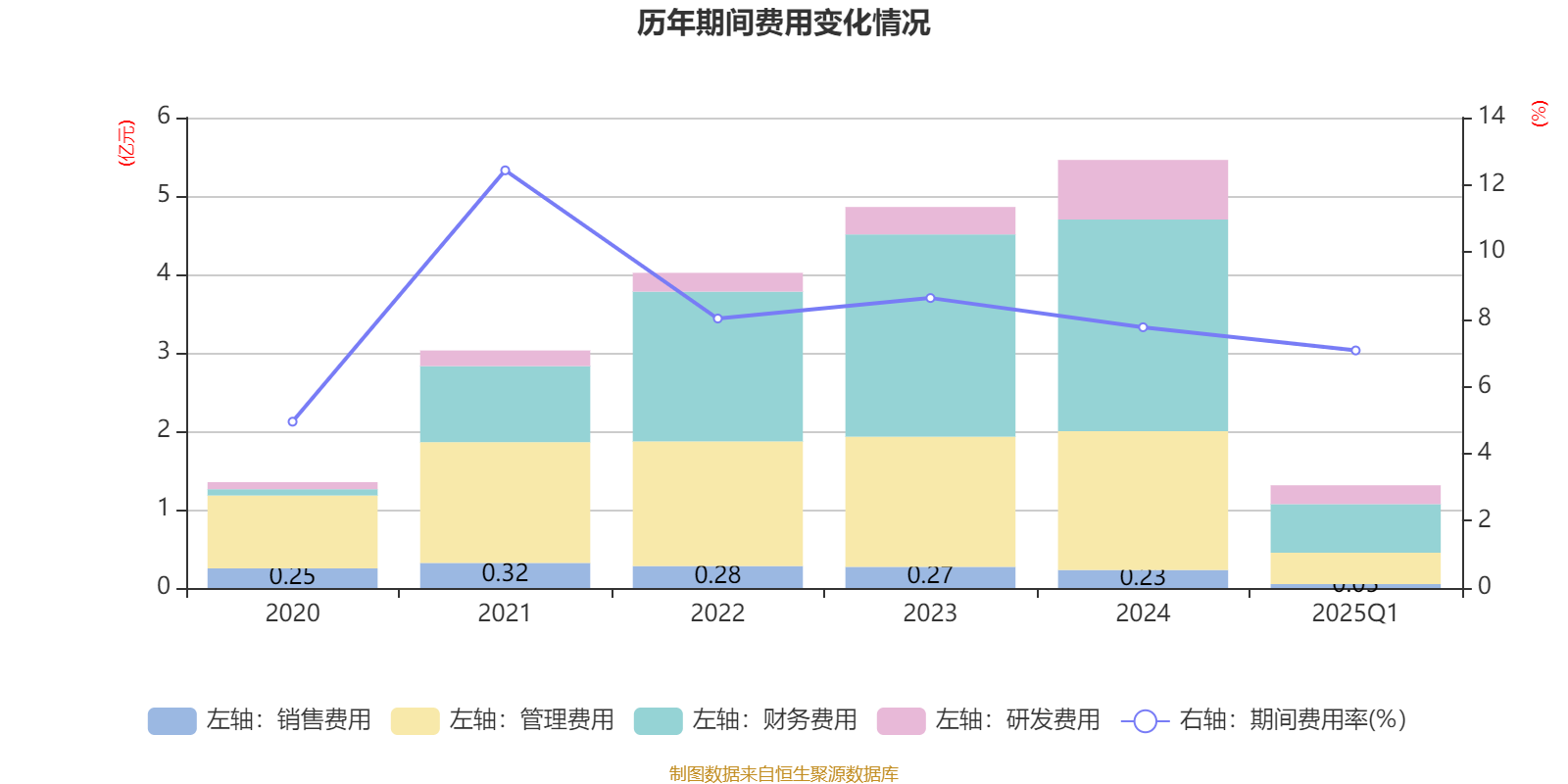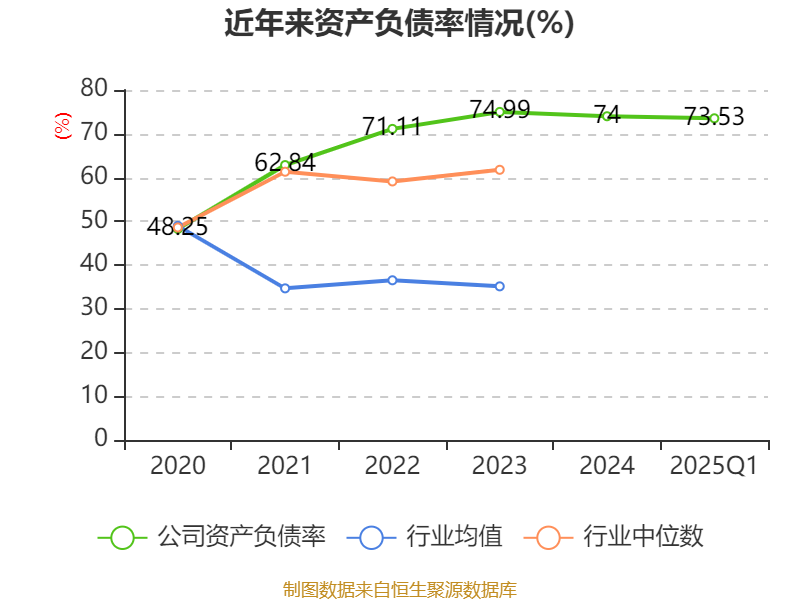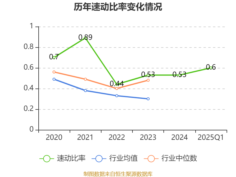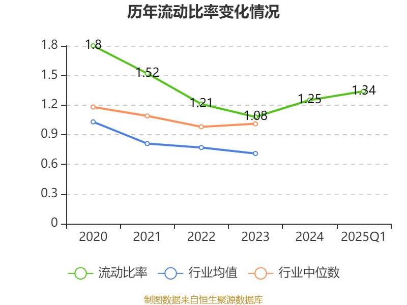 2025年第一季度,公司流动比率为1.34,速动比率为0.6。