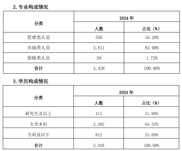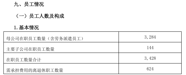 截至2024年末,西安银行在职员工总数为3428人,较年初增长4人。其中母公司员工3284人,主要子公司员工144人。此外,该行母公司及主要子公司需承担费用的离退休职工人数为624人。