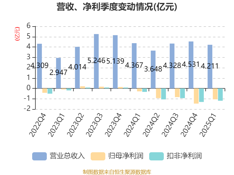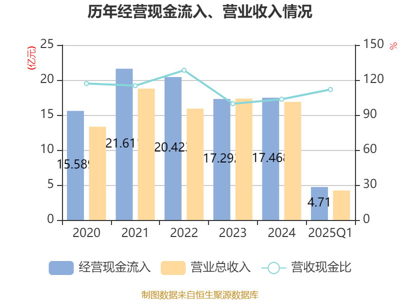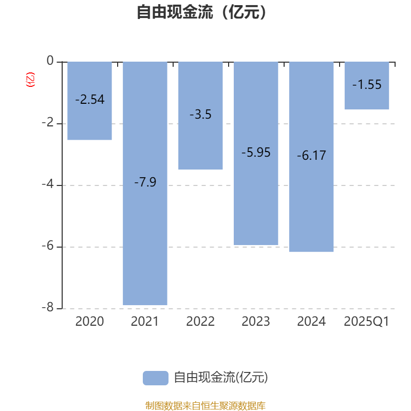 截至2025年一季度末,公司经营活动现金流净额为-197.39万元,同比减少324.35万元;筹资活动现金流净额1.47亿元,同比增加1834.92万元;投资活动现金流净额1.27亿元,上年同期为-728.72万元。