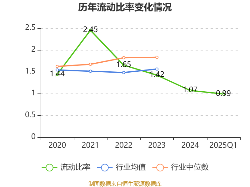 2025年第一季度,公司流动比率为0.99,速动比率为0.89。