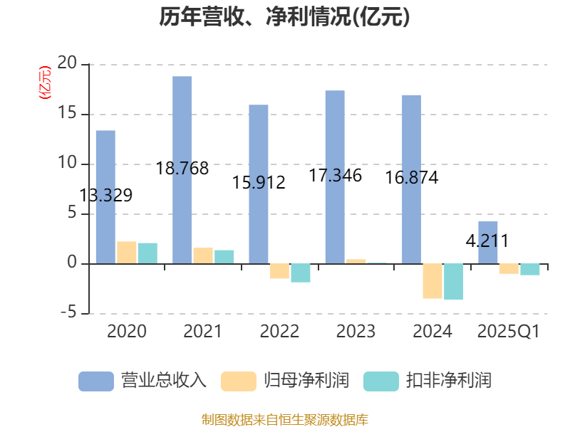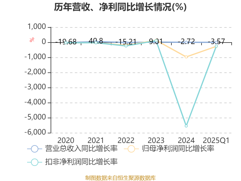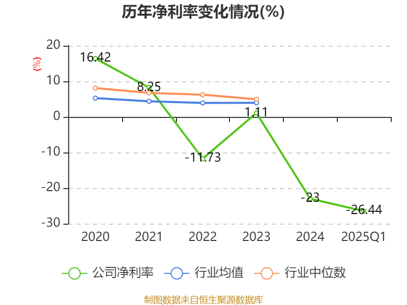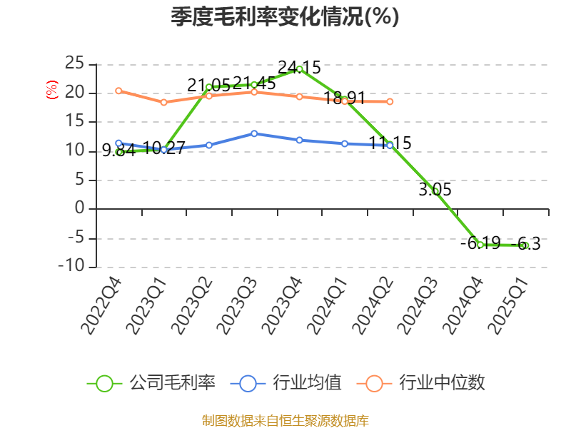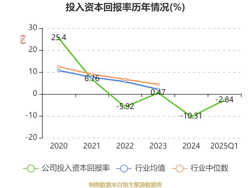 盈利能力方面, 2025年一季度公司加权平均净资产收益率为-4.65%,同比下降3.55个百分点。公司2025年第一季度投入资本回报率为-2.84%,较上年同期下降1.74个百分点。