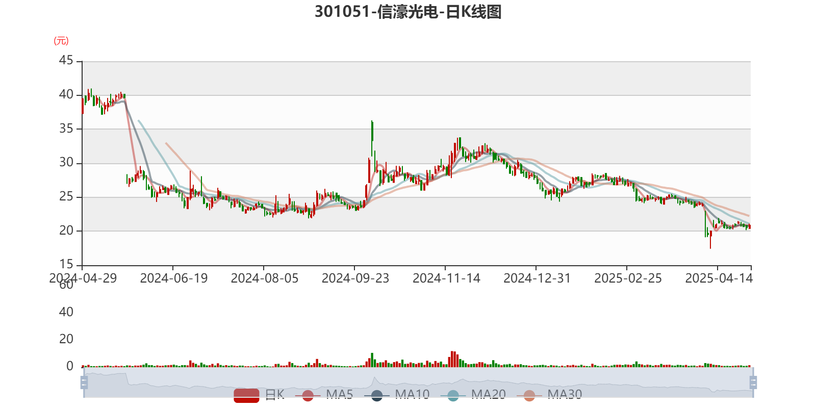以4月28日收盘价计算,信濠光电目前市盈率(TTM)约为-8.07倍,市净率(LF)约1.57倍,市销率(TTM)约2.08倍。