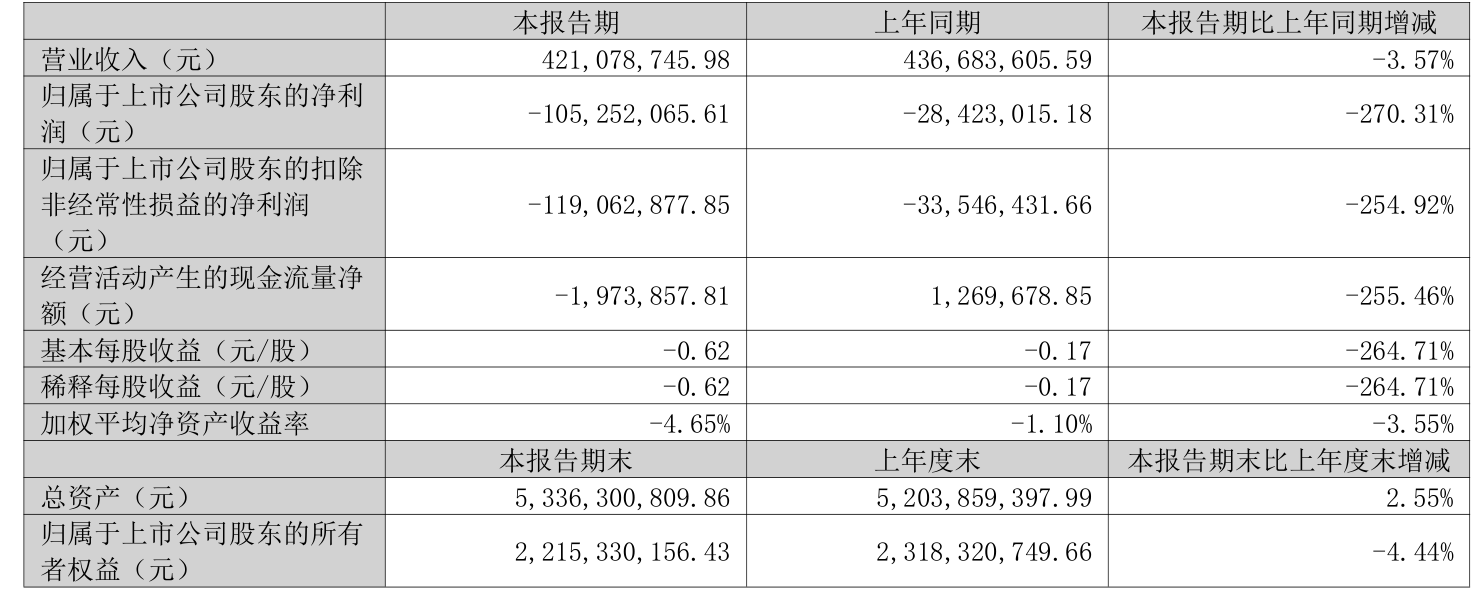 中证智能财讯信濠光电(301051)4月29日披露2025年第一季度报告。公司实现营业总收入4.21亿元,同比下降3.57%;归母净利润亏损1.05亿元,上年同期亏损2842.3万元;扣非净利润亏损1.19亿元,上年同期亏损3354.64万元;经营活动产生的现金流量净额为-197.39万元,上年同期为126.97万元;报告期内,信濠光电基本每股收益为-0.62元,加权平均净资产收益率为-4.65%。