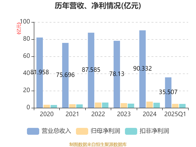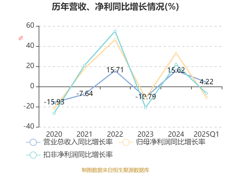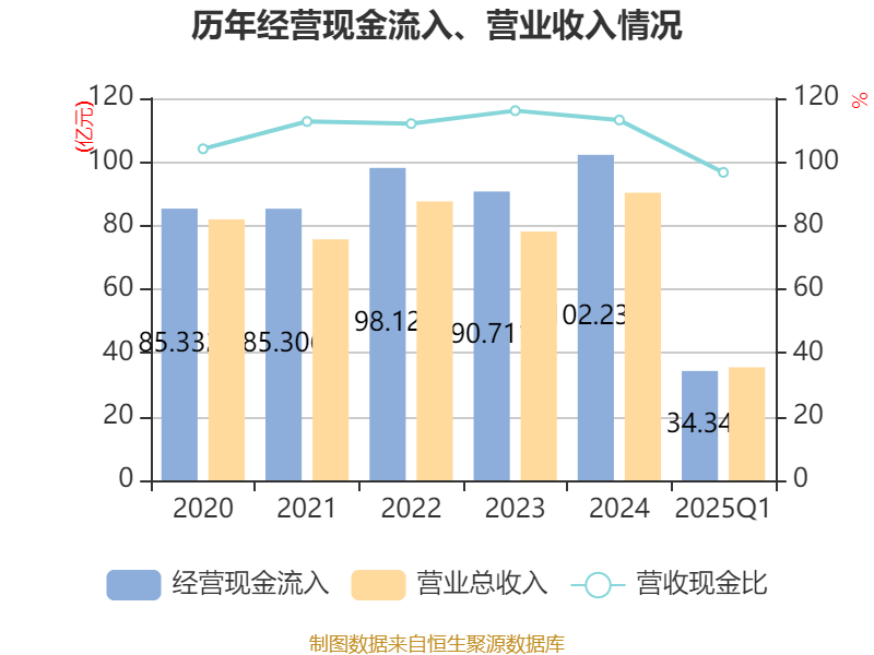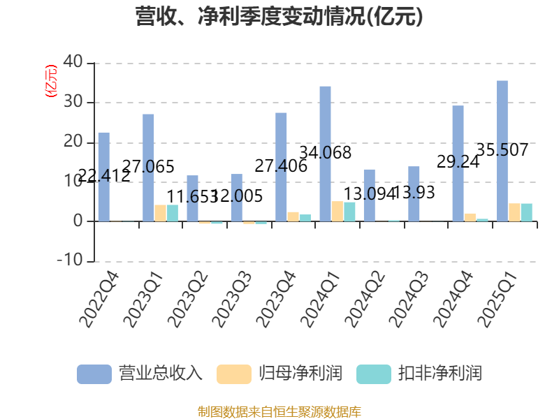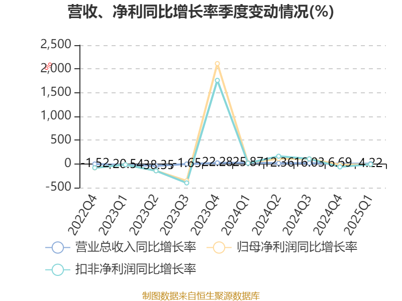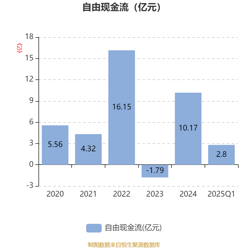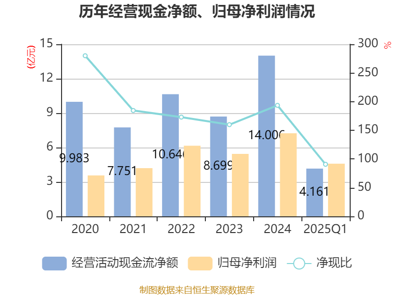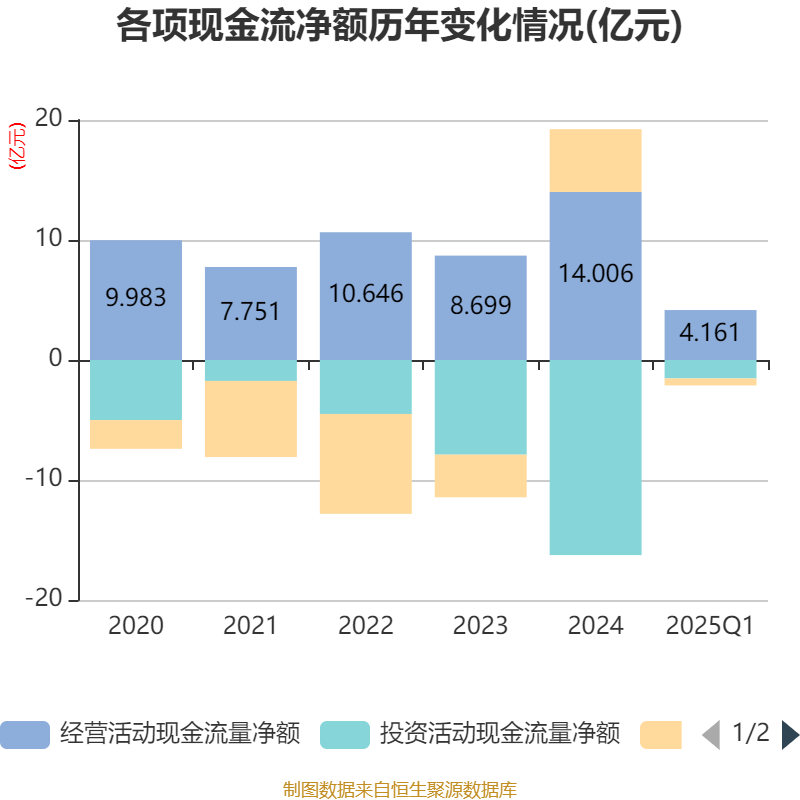 截至2025年一季度末,公司经营活动现金流净额为4.16亿元,同比下降6.64%;筹资活动现金流净额-5838.84万元,同比减少18.72万元;投资活动现金流净额-1.53亿元,上年同期为-1.68亿元。