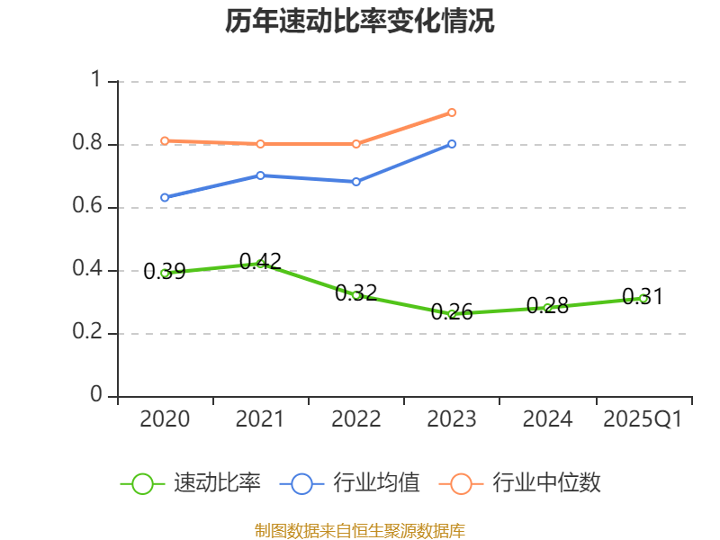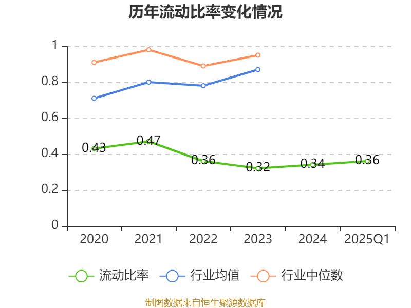 2025年第一季度,公司流动比率为0.36,速动比率为0.31。
