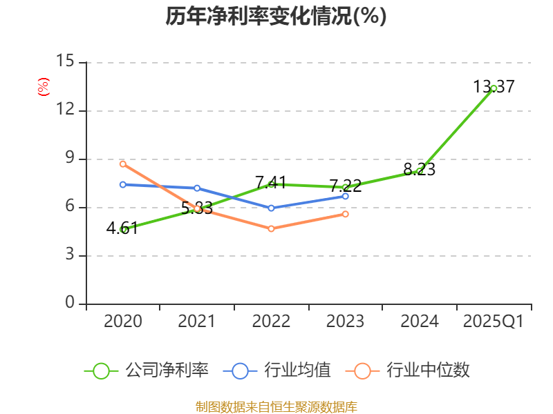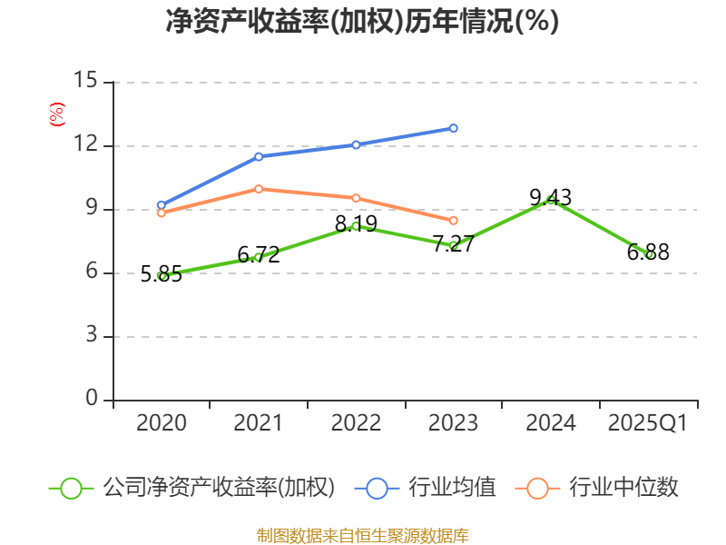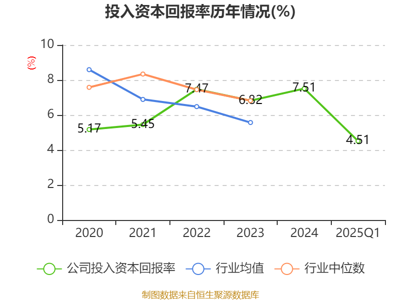 盈利能力方面, 2025年一季度公司加权平均净资产收益率为6.88%,同比上升0.4个百分点。公司2025年第一季度投入资本回报率为4.51%,较上年同期下降0.49个百分点。