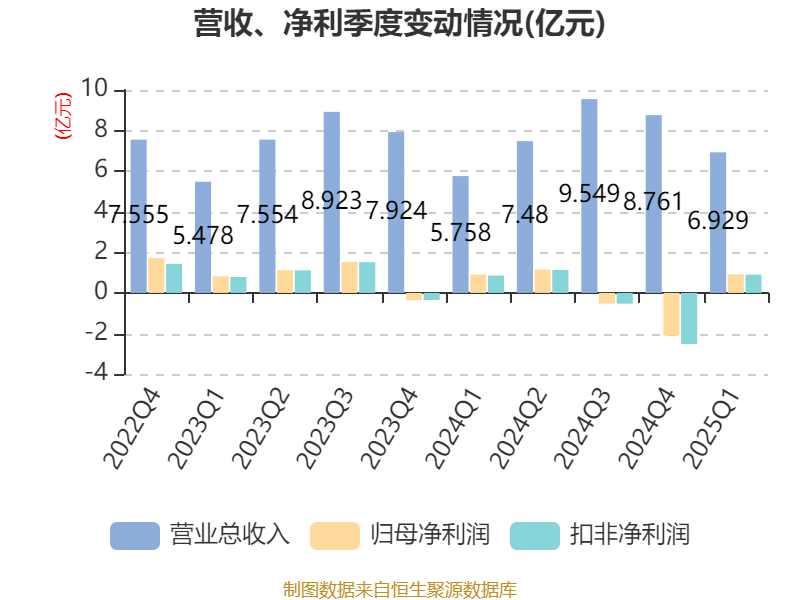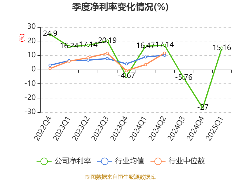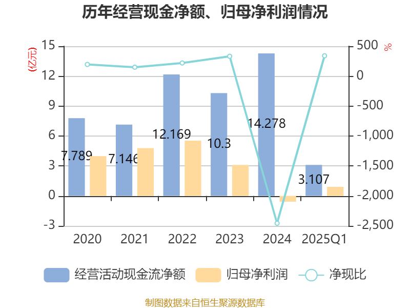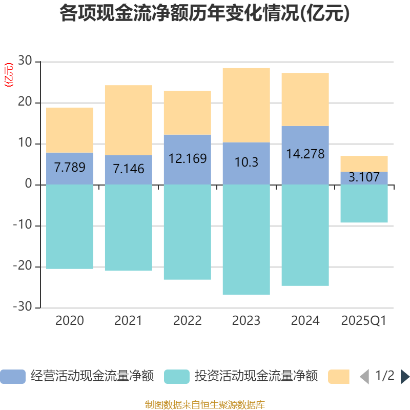 截至2025年一季度末,公司经营活动现金流净额为3.11亿元,同比增长57.06%;筹资活动现金流净额3.88亿元,同比减少2705.89万元;投资活动现金流净额-9.27亿元,上年同期为-3.84亿元。