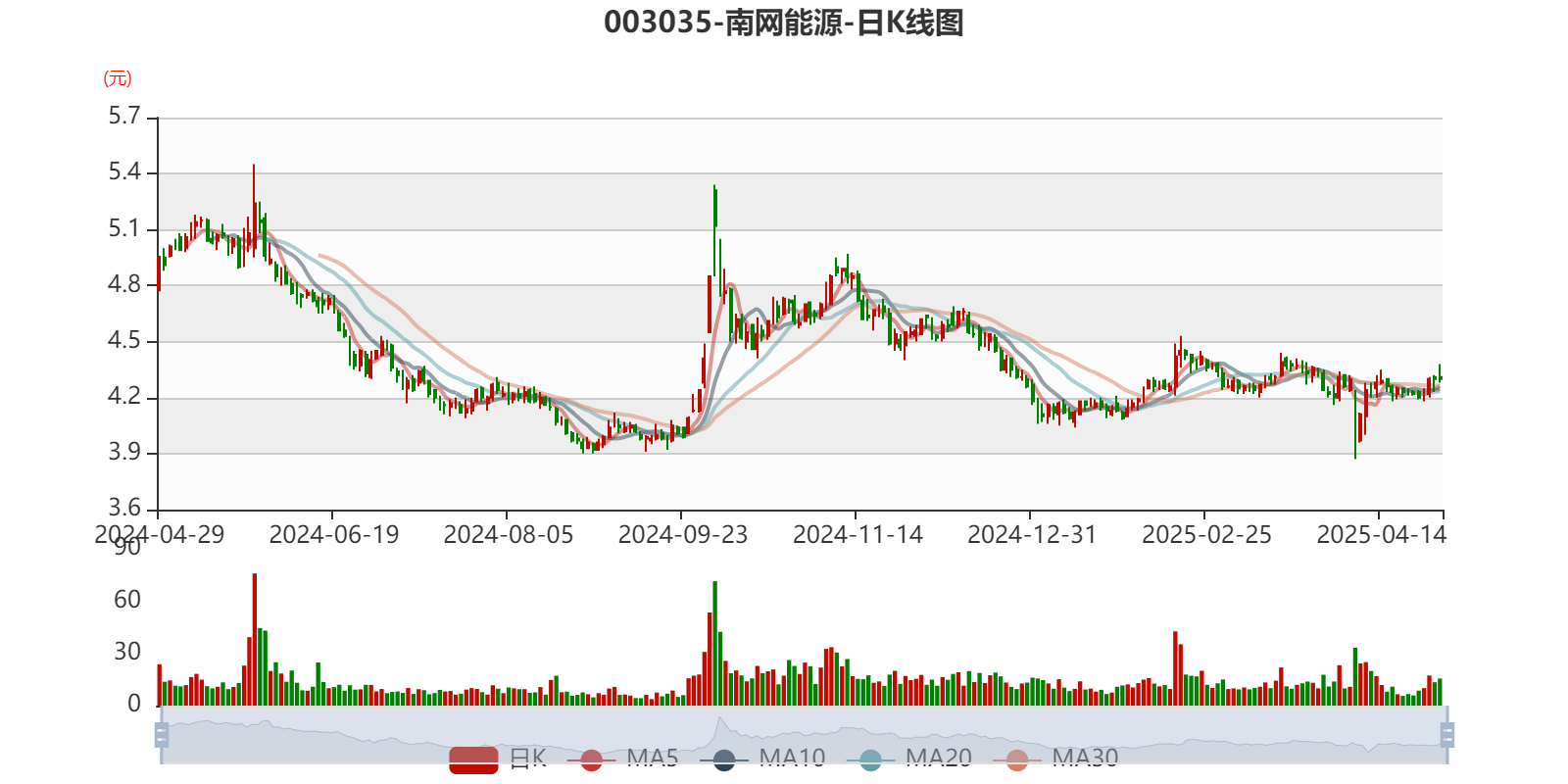 以4月28日收盘价计算,南网能源目前市盈率(TTM)约为-287.53倍,市净率(LF)约2.43倍,市销率(TTM)约4.98倍。