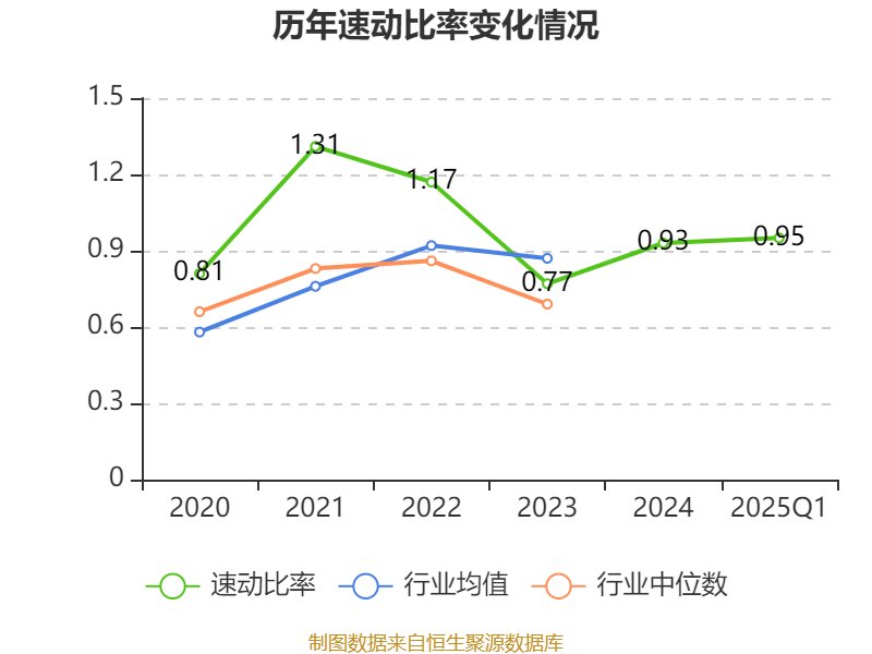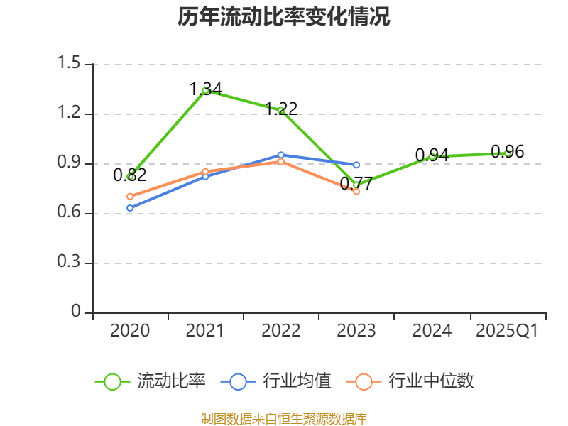 2025年第一季度,公司流动比率为0.96,速动比率为0.95。