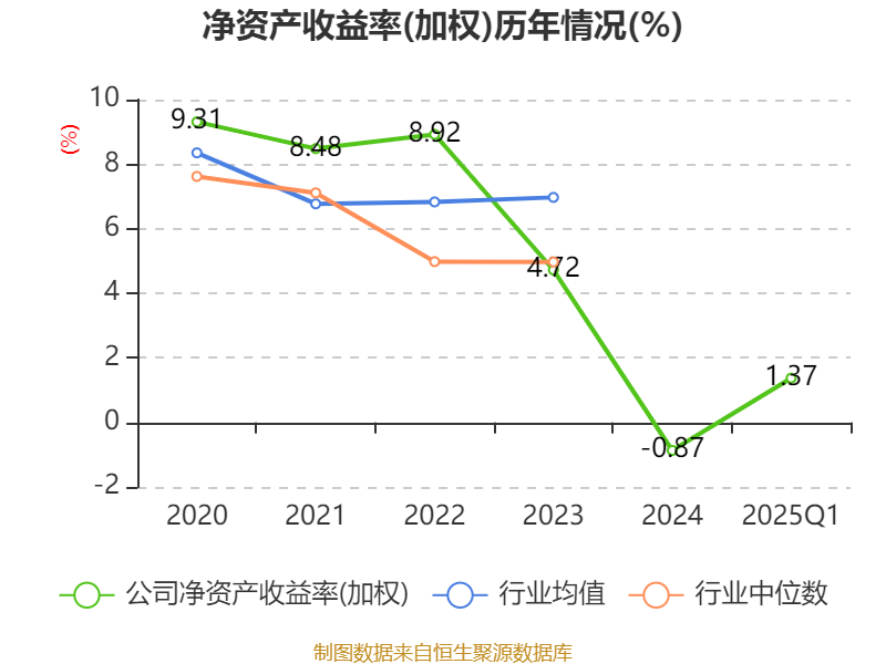 盈利能力方面, 2025年一季度公司加权平均净资产收益率为1.37%,同比上升0.05个百分点。公司2025年第一季度投入资本回报率为1.13%,较上年同期上升0.1个百分点。