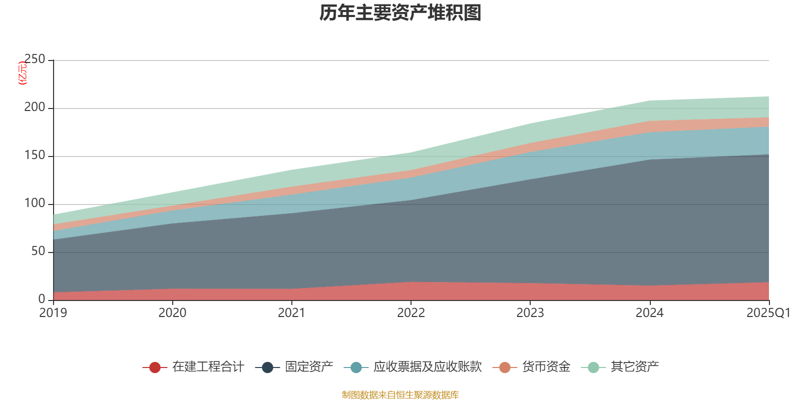 资产重大变化方面,截至2025年一季度末,公司在建工程合计较上年末增加23.27%,占公司总资产比重上升1.5个百分点;货币资金较上年末减少18.66%,占公司总资产比重下降1.17个百分点;固定资产较上年末增加1.51%,占公司总资产比重下降0.34个百分点;其他非流动资产较上年末减少38.95%,占公司总资产比重下降0.34个百分点。