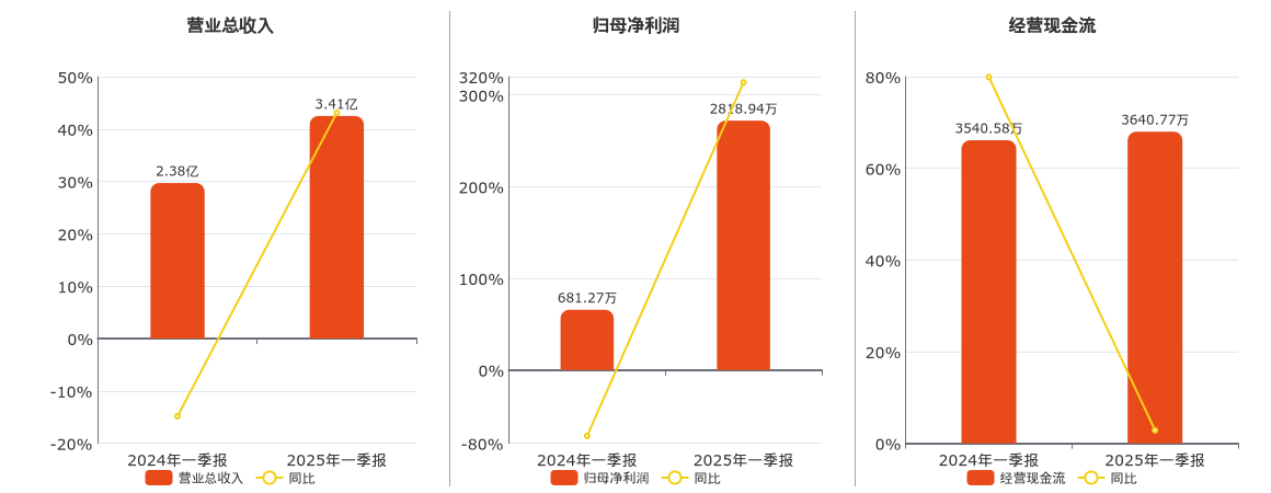 公司营业总收入为3.41亿元,在已披露的同业公司中排名第39。归母净利润为2818.94万元。经营活动现金净流入为3640.77万元。