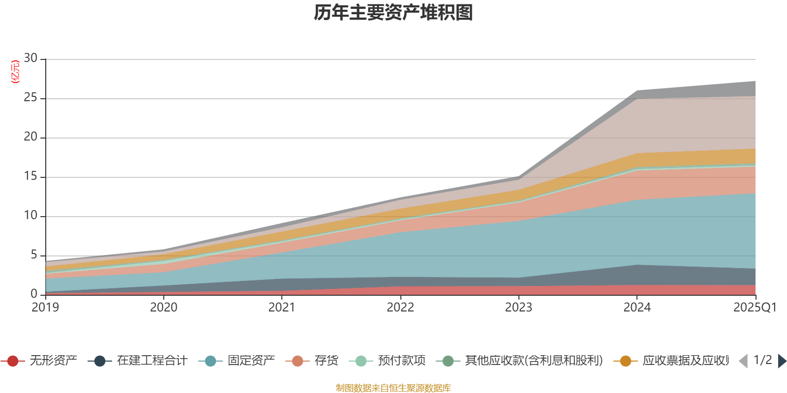 资产重大变化方面,截至2025年一季度末,公司固定资产较上年末增加15.89%,占公司总资产比重上升3.42个百分点;交易性金融资产合计较上年末增加190.87%,占公司总资产比重上升2.88个百分点;在建工程合计较上年末减少18.66%,占公司总资产比重下降2.21个百分点;货币资金较上年末减少3.51%,占公司总资产比重下降2.07个百分点。