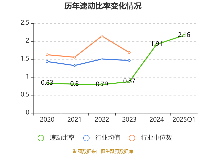 2025年第一季度,公司流动比率为2.86,速动比率为2.16。
