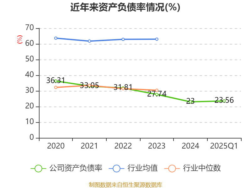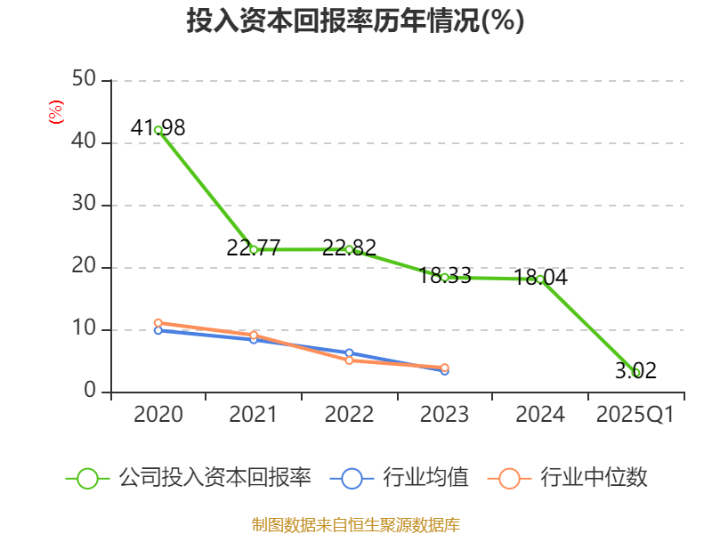 盈利能力方面, 2025年一季度公司加权平均净资产收益率为3.54%,同比下降2.08个百分点。公司2025年第一季度投入资本回报率为3.02%,较上年同期下降6.72个百分点。