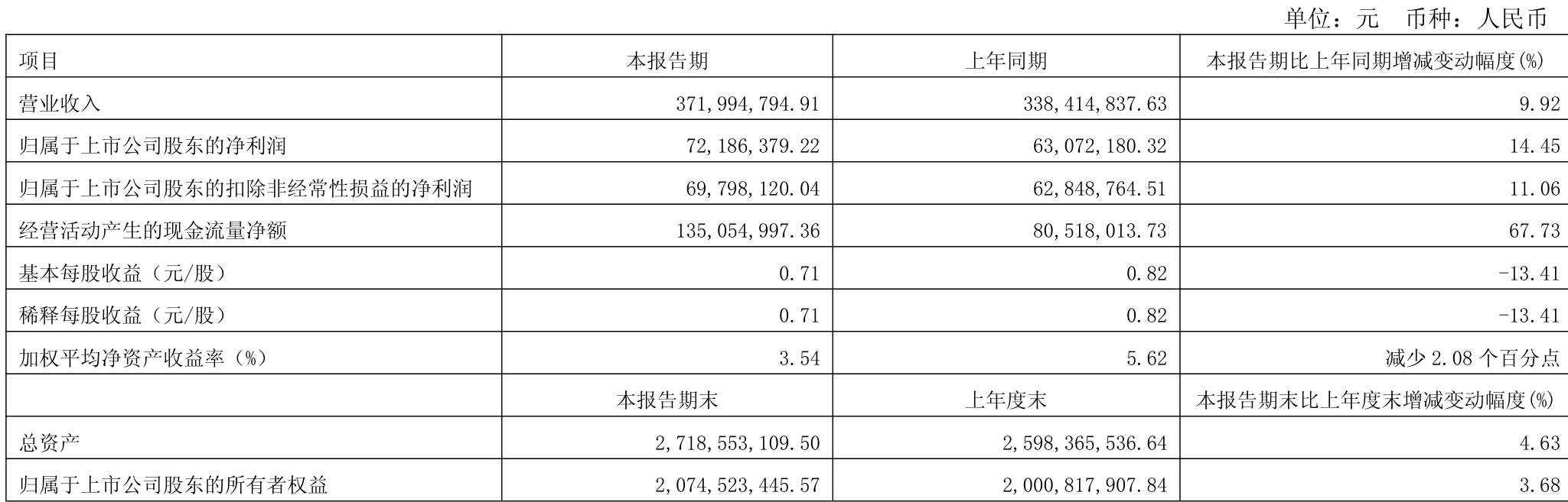 中证智能财讯众鑫股份(603091)4月29日披露2025年第一季度报告。公司实现营业总收入3.72亿元,同比增长9.92%;归母净利润7218.64万元,同比增长14.45%;扣非净利润6979.81万元,同比增长11.06%;经营活动产生的现金流量净额为1.35亿元,同比增长67.73%;报告期内,众鑫股份基本每股收益为0.71元,加权平均净资产收益率为3.54%。