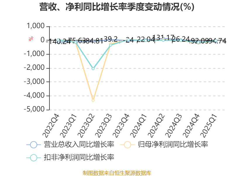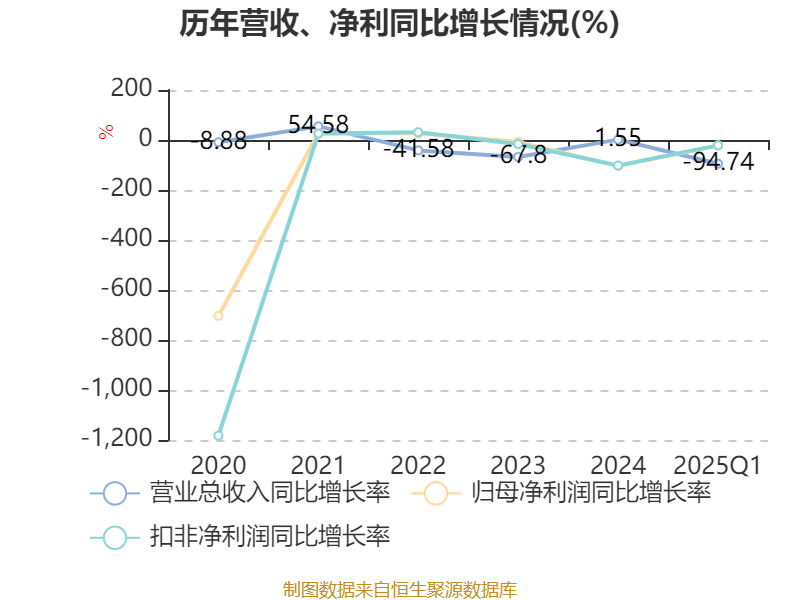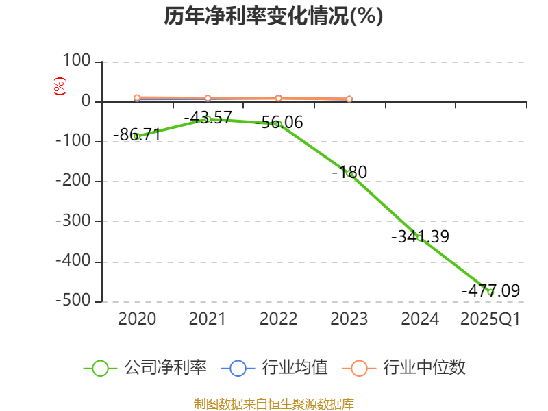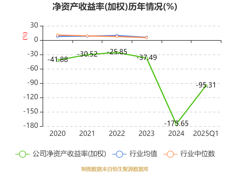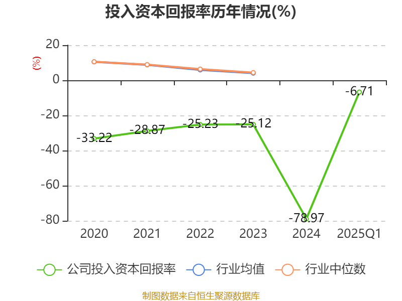 盈利能力方面, 2025年一季度公司加权平均净资产收益率为-95.31%,同比下降92.29个百分点。公司2025年第一季度投入资本回报率为-6.71%,较上年同期下降5.04个百分点。