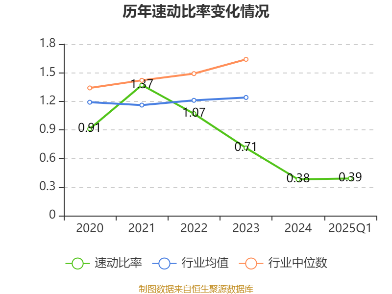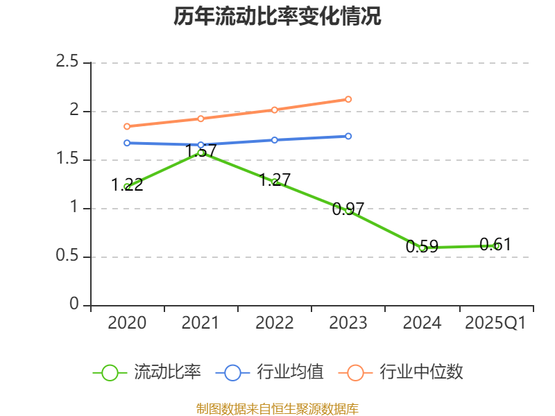 2025年第一季度,公司流动比率为0.61,速动比率为0.39。
