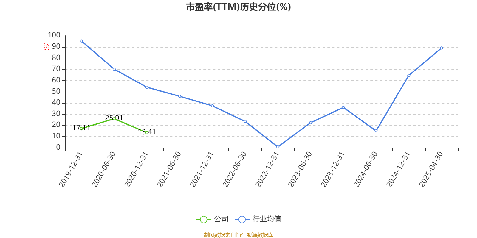 市盈率、市净率为负时,不显示当期分位数,会导致折线图中断。