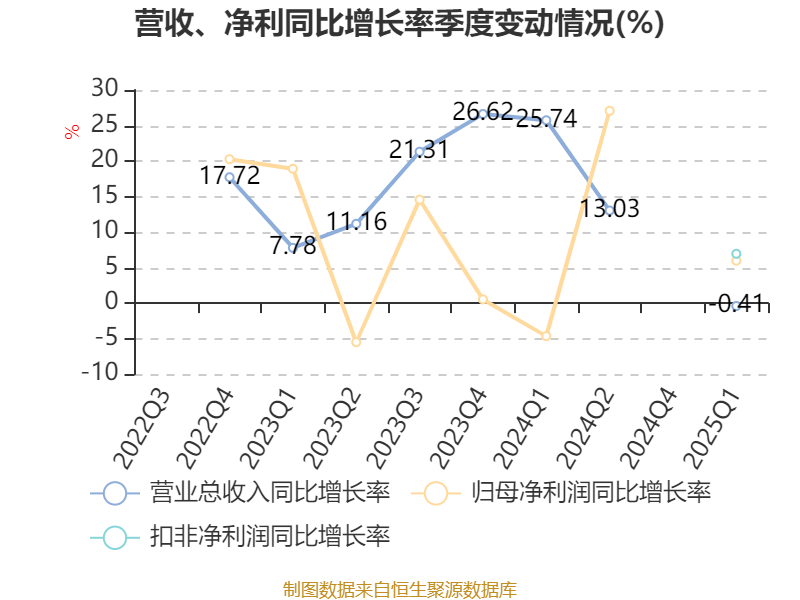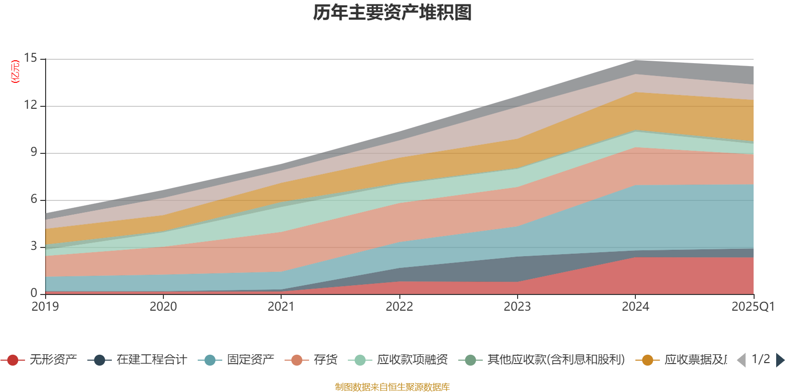 资产重大变化方面,截至2025年一季度末,公司存货较上年末减少20.89%,占公司总资产比重下降3.03个百分点;应收款项融资较上年末减少31.67%,占公司总资产比重下降1.99个百分点;应收票据及应收账款较上年末增加9.3%,占公司总资产比重上升1.98个百分点;在建工程合计较上年末增加34.02%,占公司总资产比重上升1.08个百分点。