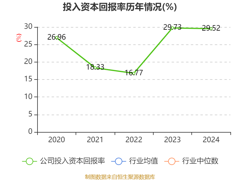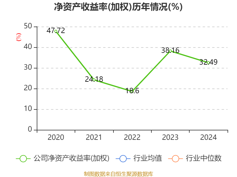 数据显示,2024年公司加权平均净资产收益率为32.49%,较上年同期下降5.67个百分点。公司2024年投入资本回报率为29.52%,较上年同期下降0.21个百分点。