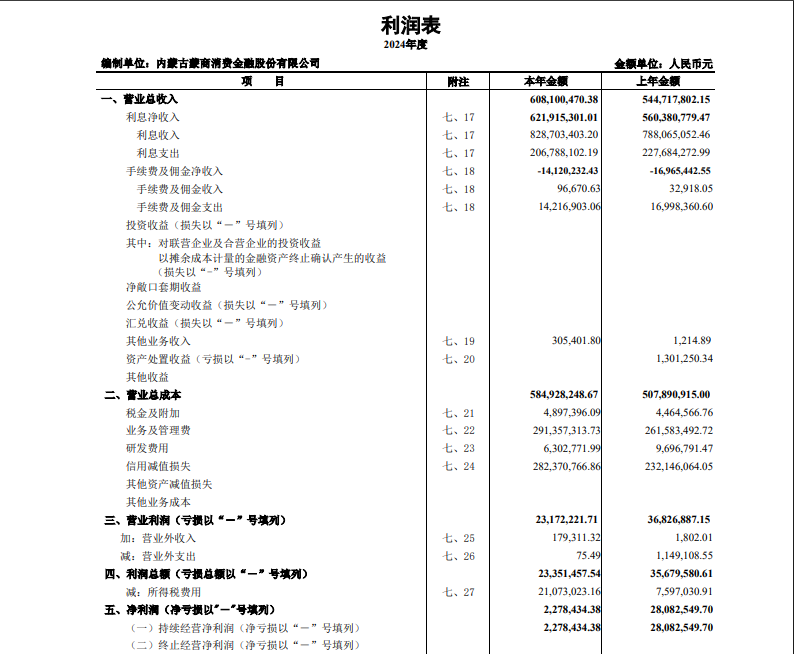 尾部机构承压!蒙商消费金融去年净利同比下降逾九成