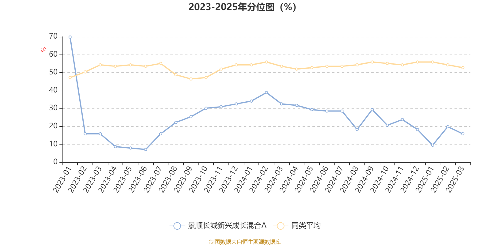 通过所选区间该基金净值增长率分位图,可以观察该基金与同类基金业绩比较情况。图为坐标原点到区间内某时点的净值增长率在同类基金中的分位数。