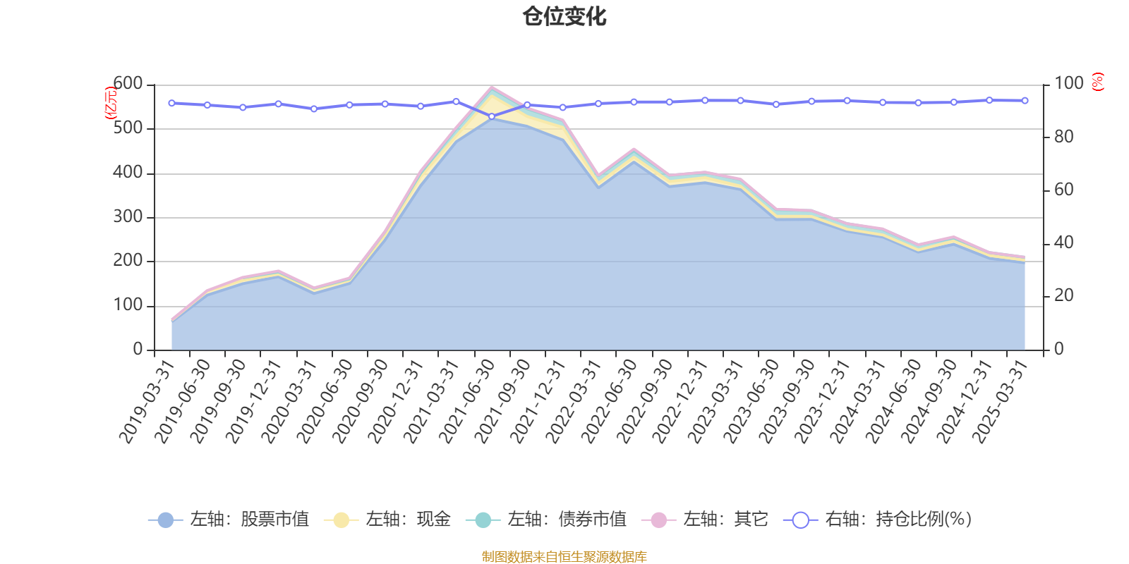 据定期报告数据统计,近三年平均股票仓位为93.6%,同类平均为85.79%。2024年末基金达到94.14%的最高仓位,2021年上半年末最低,为88.02%。