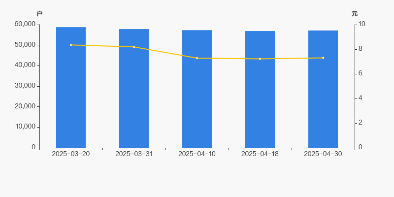 2025年3月20日至今,公司股东户数有所下降,区间跌幅为2.75%。2025年3月20日至2025年4月30日区间股价下降12.57%。