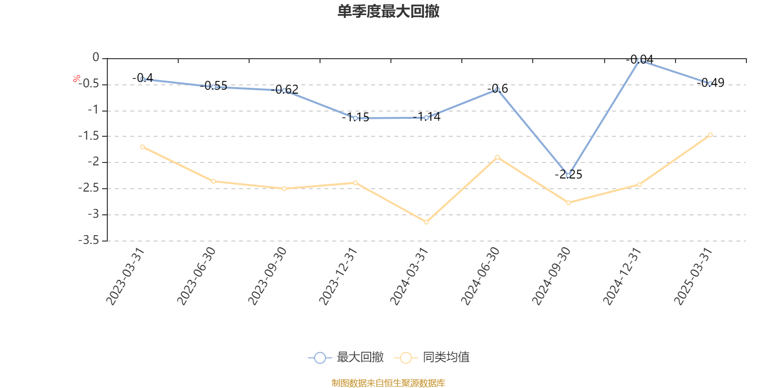 截至4月24日,基金近三年最大回撤为2.28%,同类可比基金排名527/535。单季度最大回撤出现在2024年三季度,为2.25%。